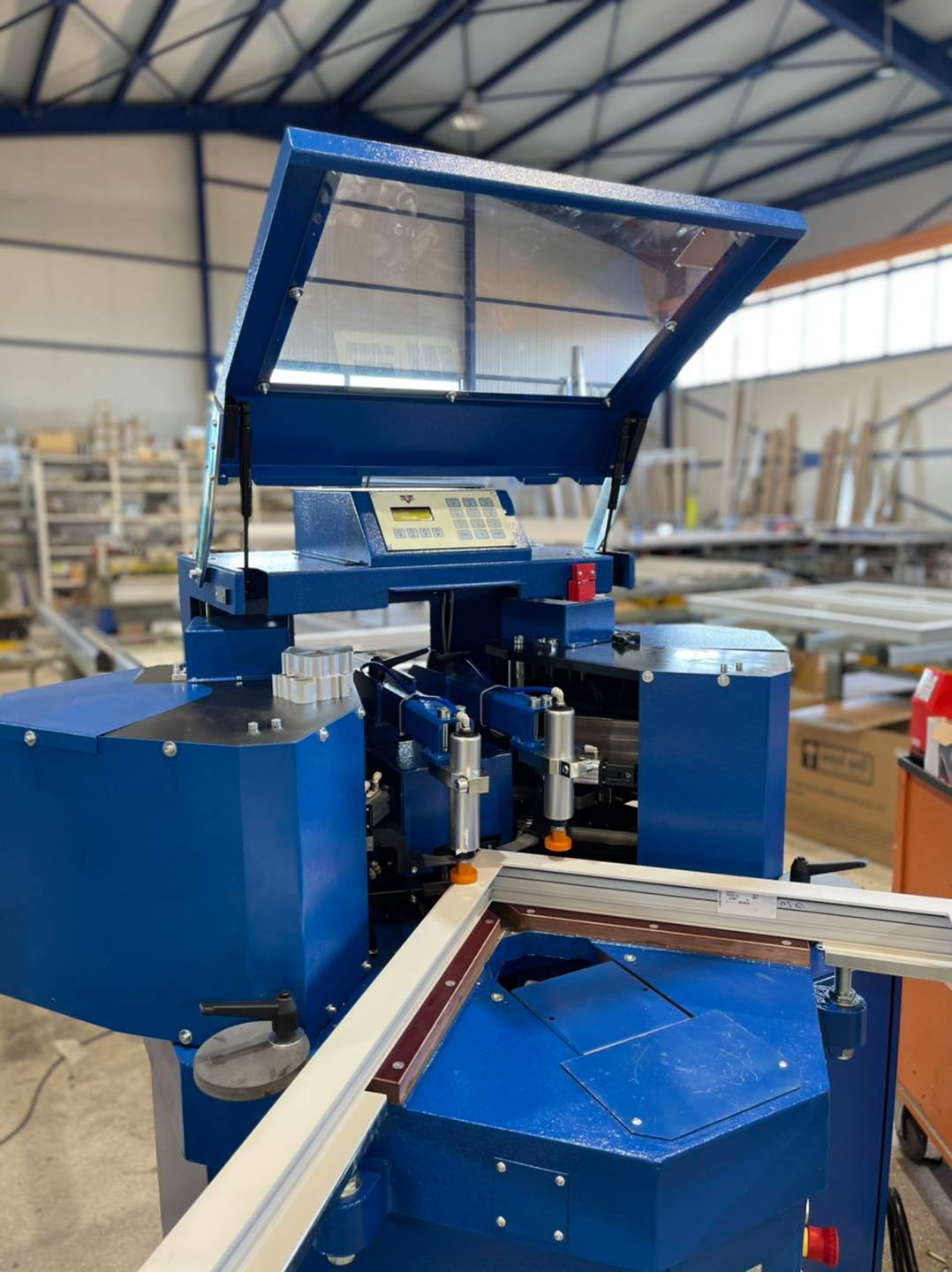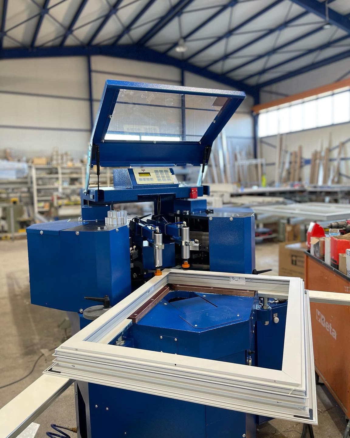 Πρόκειται για μία γωνιάστρα με ηλεκτρονικές ρυθμίσεις των μαχαιριών (αριστερής & δεξιάς κεφαλής)  καθώς και της γλώσσας για το γώνιασμα του κουφώματος. Αποθήκευση κωδικών προφίλ στην μνήμη, ώστε δίνοντας ξανά τον κωδικό να γίνονται αυτόματα οι ρυθμίσεις των μαχαιριών. Ραουλιέρες αριστερά – δεξιά για την κατάλληλη τοποθέτηση και στήριξη του κουφώματος. Ιδανική για γρήγορες και ακριβείς αλλαγές από κάσα σε φύλλο καθώς και σε αλλαγή από μια σειρά σε κάποια άλλη.